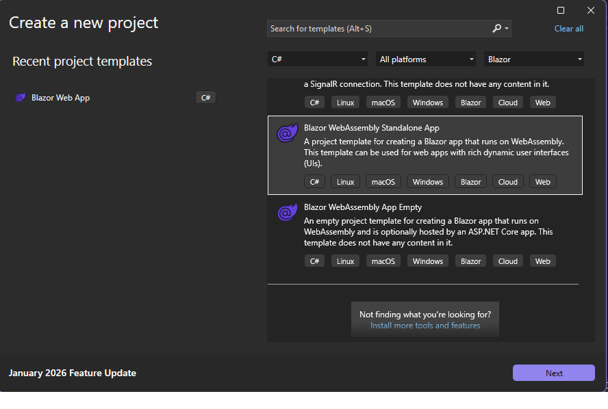 - Search for Blazor.