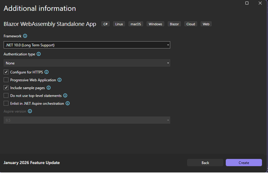 - Select Blazor WebAssembly StandaloneApp.