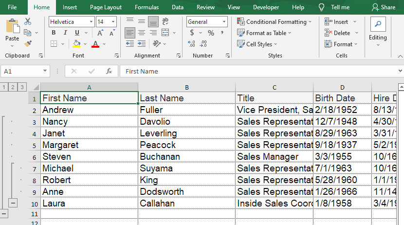 { "EmployeeID": 2, "FirstName": "Andrew", "LastName": "Fuller", "ReportsTo": null, "Country": "USA", "Title": "Vice President, Sales", "HireDate": "1992-08-14 00:00:00", "BirthDate": "1952-02-19 00:00:00", "City": "Tacoma", "Address": "908 W. Capital Way" },