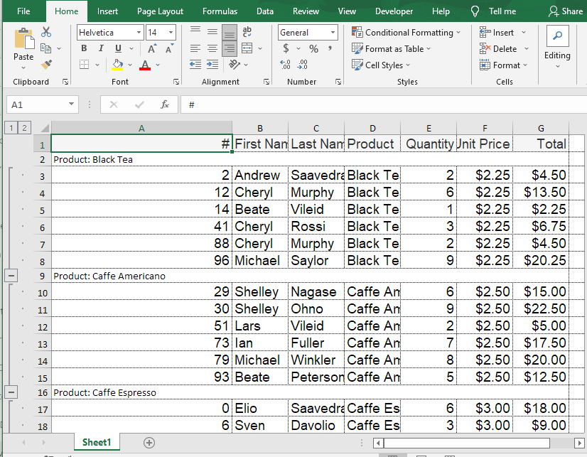 The Grid maintains the groups and in Excel you still will be able to expand/collapse the groups.Let's look at the following code taken from: data export with grouping sample.