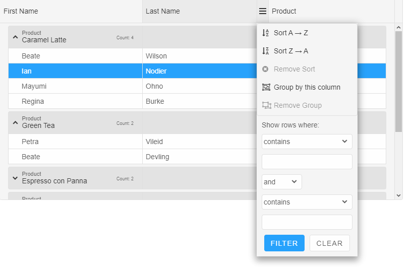{ "firstName": "Beate", "lastName": "Wilson", "productName": "Caramel Latte"},