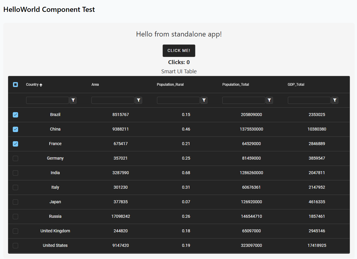 We will add the Smart.Table and Smart.Button components and enable the following Table features: Sorting, Filtering, Editing and Selection.