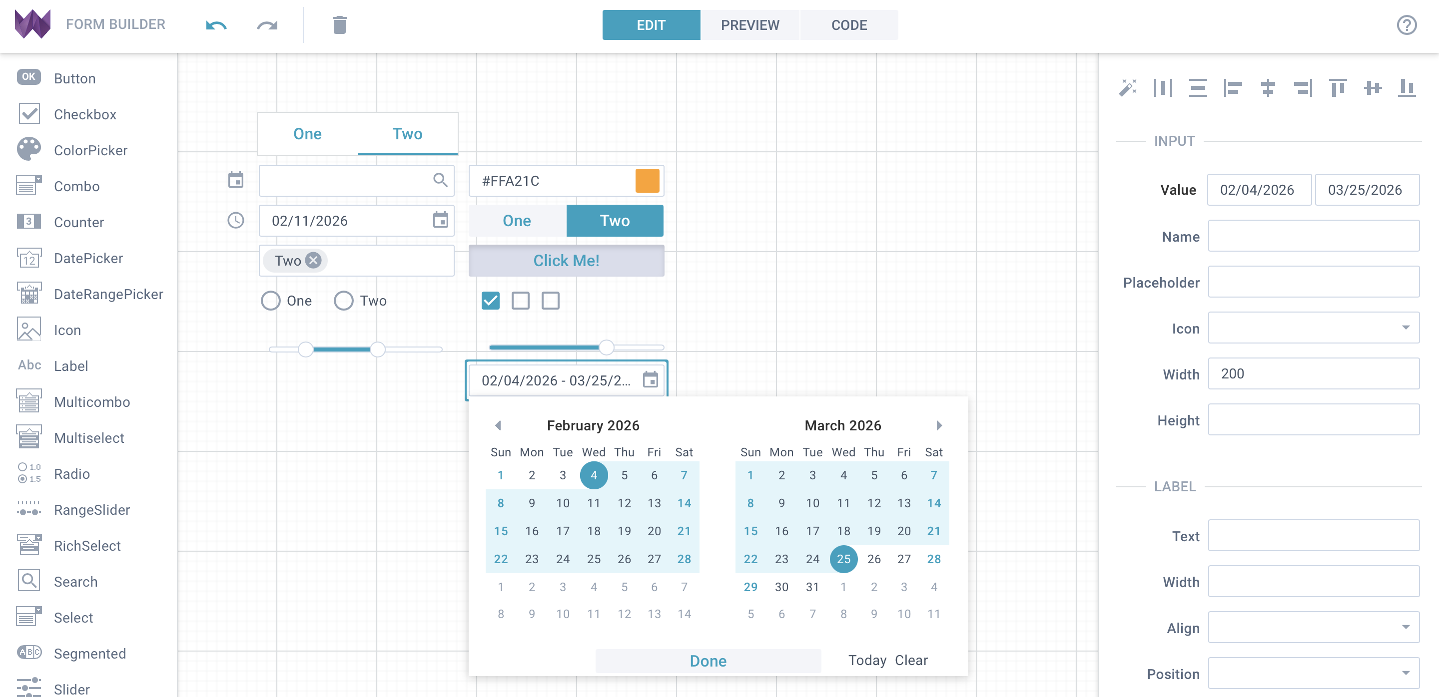 For enterprise systems, CRMs, HR tools, and admin dashboards, this kind of intelligent input handling saves time and reduces user frustration. 2. Webix Form – Flexible and Enterprise-ReadyWebix offers a robust Form UI widget designed for building customizable and validated forms in JavaScript applications. It acts as a container for all common input types (text, textarea, select boxes, checkboxes, radios) and supports integration with frameworks like React, Angular, and Vue. Forms can also include advanced features such as grouped sections and multi-view layouts for complex use cases. Webix uses a clean JSON-based configuration approach that makes forms easy to define and maintain. It supports a wide range of input controls, responsive layouts, and advanced validation rules.